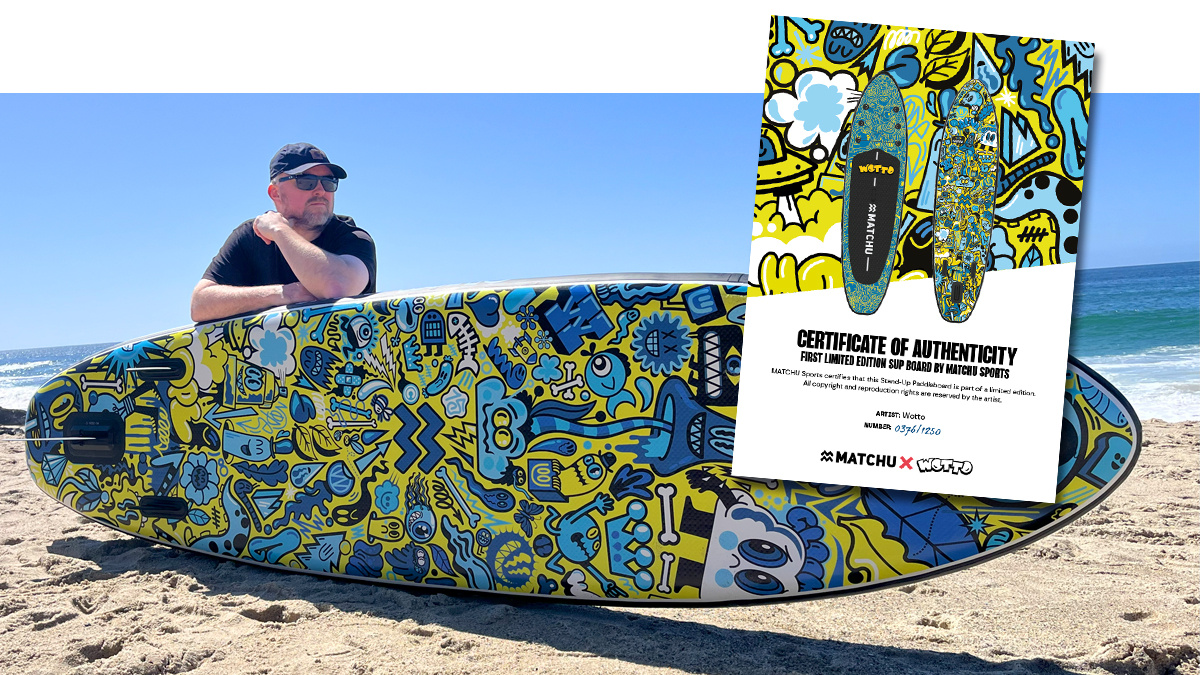 SluitenHet Matchu x WOTTO SUP-board combineert kunst en performance in een opvallend design. Dankzij de double-layer dropstitch technologie is het sterk en stabiel. Formaat: 320x81x15 cm, draagvermogen 150 kg....
